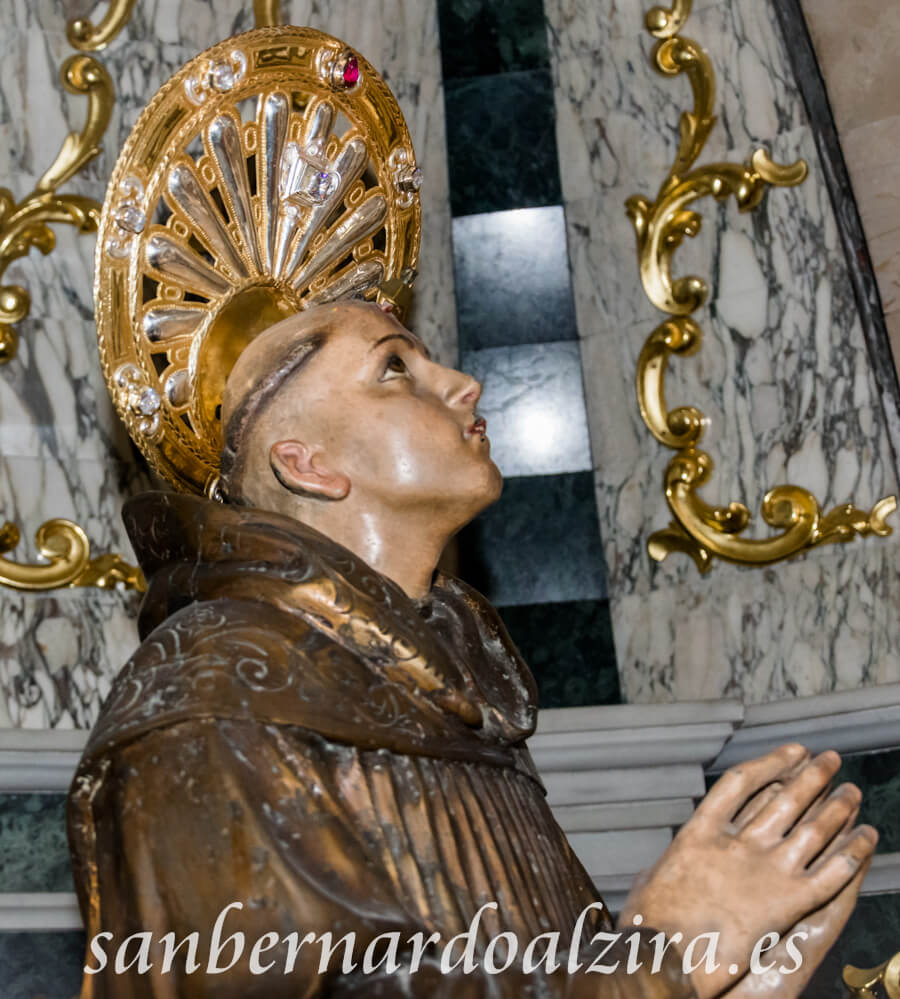 “El zelo de los Fieles en procurar alguna de las reliquias de San Bernardo, por los continuos Milagros, que por ellas se experimentan, ha sido siempre tal, que en el año 1609 se precisada la Villa de Alzira a hacer una Estatua de bronce del Santo, y poner dentro de ella sus huesos… cerrando de esa suerte la puerta a tantos, que con ansias las solicitaban”